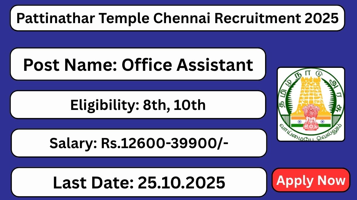 Pattinathar Temple Chennai Office Assistant Advertisement & Apply Link: