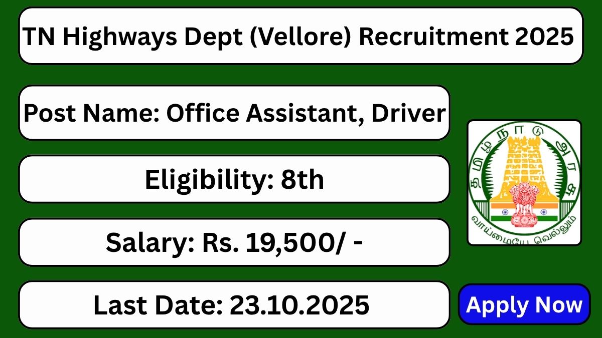 TN Highways Department (Vellore) Recruitment 2025 – Overview