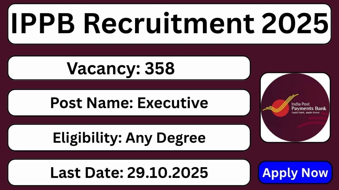 India Post Payments Bank Limited (IPPB) has released the official notification IPPB/CO/HR/RECT./2025-26/03 to fill 358 Executive vacancies across India. The recruitment is on a contract basis. The application process is completely online and available at www.ippbonline.com from 09.10.2025 to 29.10.2025.