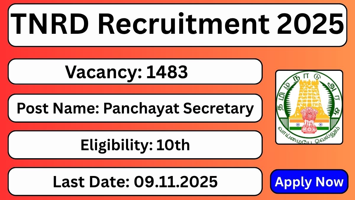 The Rural Development and Panchayat Raj Department (TNRD), Government of Tamil Nadu, has announced the recruitment of 1483 Village Panchayat Secretary posts. Candidates can apply online from 10.10.2025 to 09.11.2025 at the official website www.tnrd.tn.gov.in. Interested applicants must carefully read the official notification and check eligibility before applying.