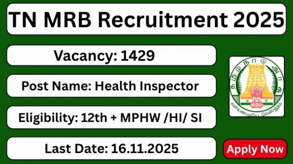 The Tamil Nadu Medical Services Recruitment Board (TN MRB) has officially announced the TN MRB Recruitment 2025 Notification No: 16/MRB/2025, dated 27.10.2025. The board invites eligible candidates to apply for 1429 Health Inspector Grade-II posts across Tamil Nadu.