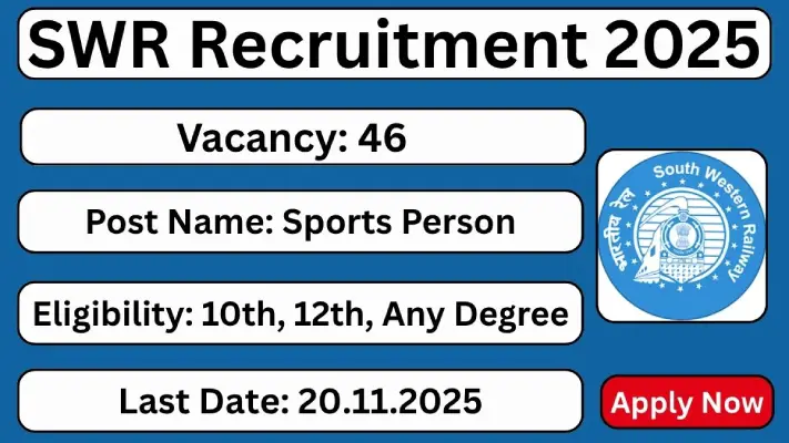South Western Railway (SWR) has officially released the SWR Recruitment 2025 Notification to fill 46 Sports Person posts under various levels. Eligible candidates can apply online from October 21, 2025, to November 20, 2025, through the official website www.rrchubli.in. Interested applicants must review the eligibility criteria, selection process, and other details before applying.
