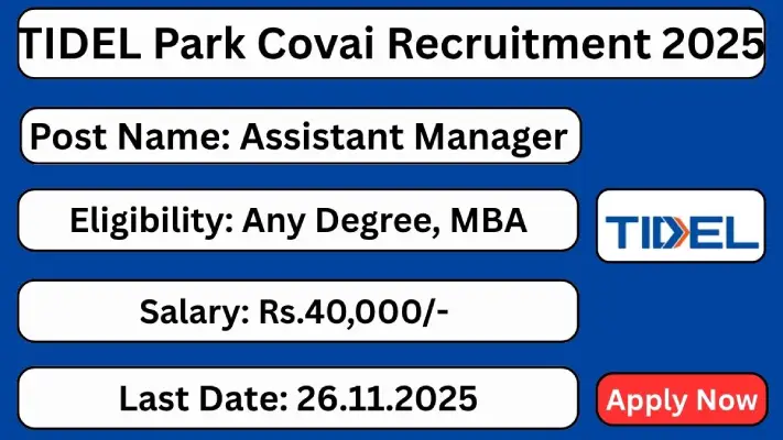 Home » TIDEL Park Coimbatore Recruitment 2025-Apply for Assistant Manager [HR & Administration] Post